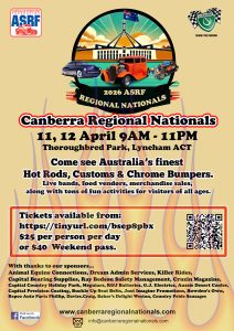 Fill your tanks and come to Canberra on the 9th of April for a rod run you will be glad you didn’t miss! Spectators are welcome, see the link below.